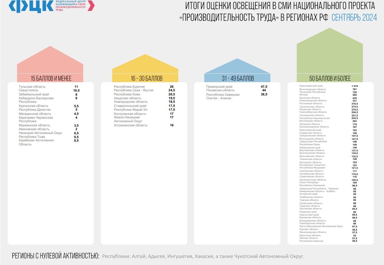 14.10.2024Чеченская Республика заняла лидирующую позицию в рейтинге Федерального центра компетенции (ФЦК) по освещению мероприятий национального проекта «Производительность труда».