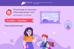 С 5 ноября по 2 декабря у школьников с 1 по 11 классы будет возможность принять участие в онлайн-олимпиаде «Культура вокруг нас» на образовательной платформе Учи.ру. Ключевая цель соревнования — развить интерес к русской культуре — языку, литературе, истории и искусству — и взглянуть на нее через призму современной жизни. Проект реализуется при поддержке национального проекта «Культура».